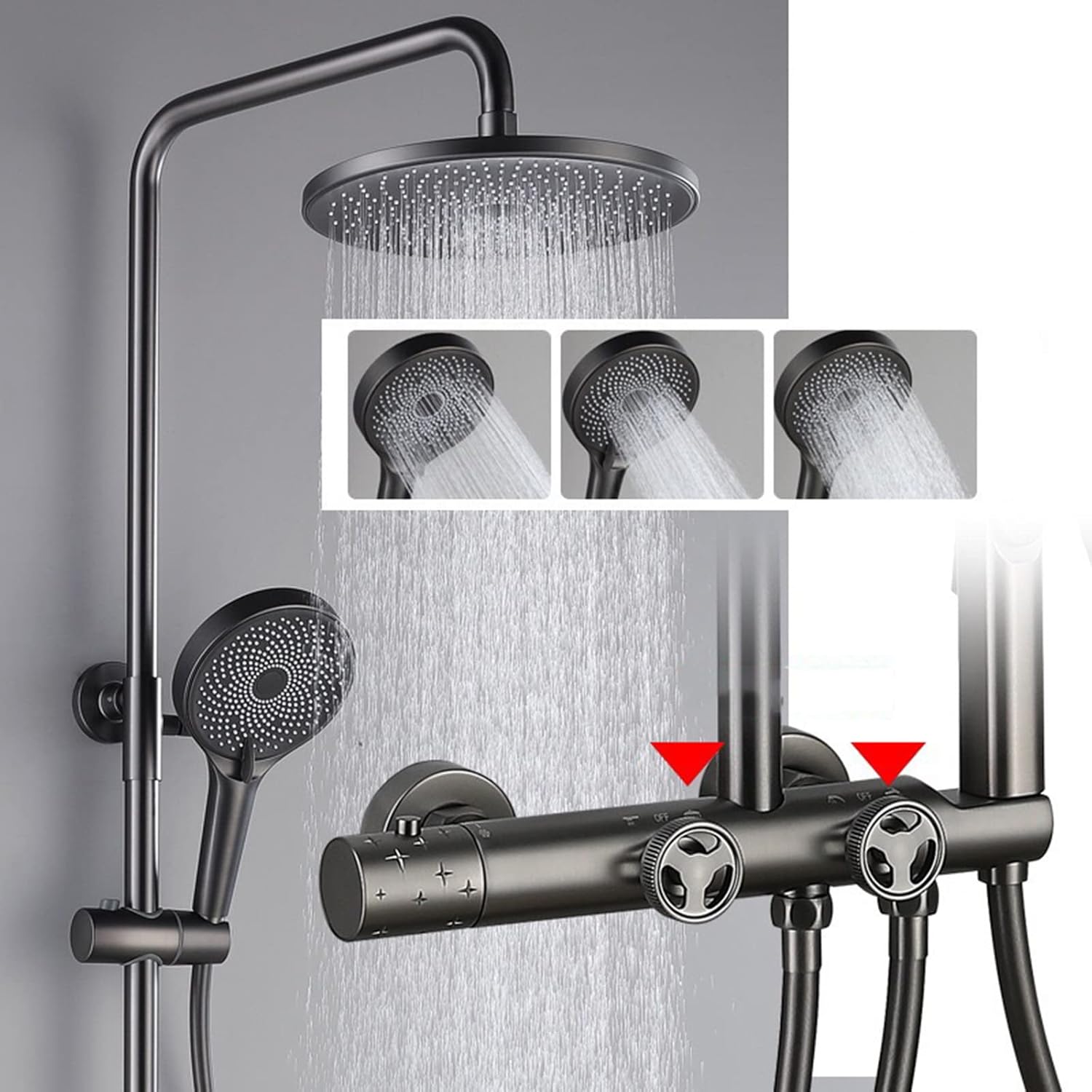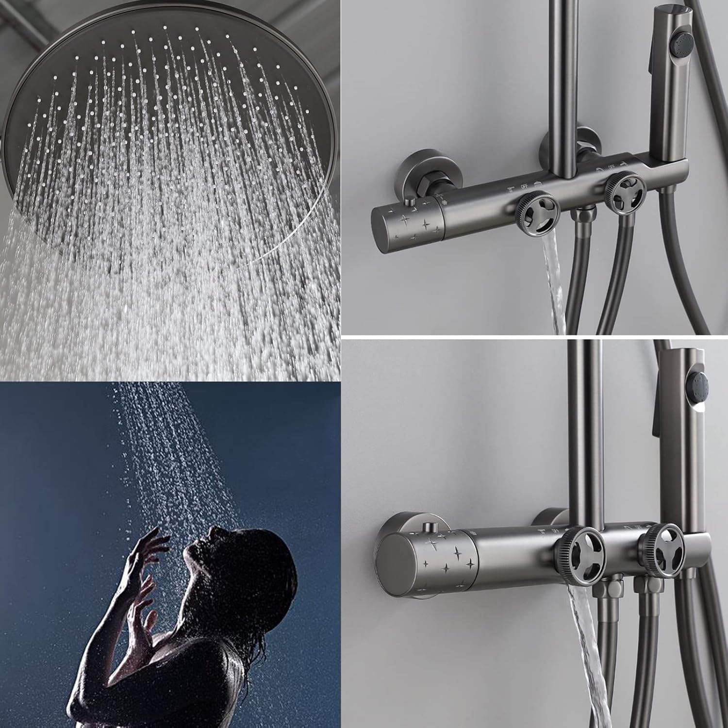 • Columna de Líneas Curvas: Su diseño de arco suave permite una instalación estética que se adapta perfectamente a duchas de diversos tamaños.