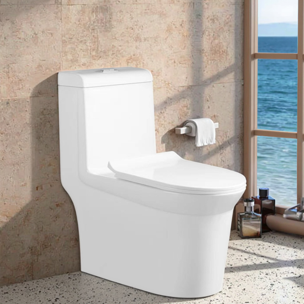 Rendimiento Superior: Equipado con un sistema de sifón en S de alto flujo que garantiza una descarga potente y completa en cada uso.