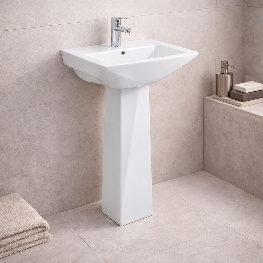 El lavamanos modelo #ZT221 presenta un diseño clásico reinterpretado con líneas modernas y proporciones equilibradas, ideal para baños que buscan funcionalidad, elegancia y orden visual. Su estructura con pedestal integrado ofrece una solución completa y estética, perfecta para espacios residenciales o comerciales donde se prioriza un acabado limpio y atemporal.